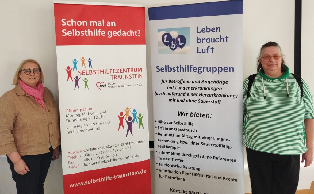 Welche Lungenerkrankungen Grund für eine Sauerstoffpflicht sein können und wie Betroffene mit diesen Einschränkungen umgehen können, erfahren sie im Interview von unserer Kollegin Christina Hille aus dem Selbsthilfezentrum in Traunstein mit Annette Hendl, der Gruppensprecherin der Selbsthilfegruppe „Leben braucht Luft“.